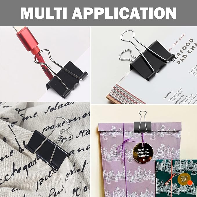 • Binder clips are ideal keeping organized of large stacks of loose paper securely fastened together and keep all foods air closed for office, home, school and crafts