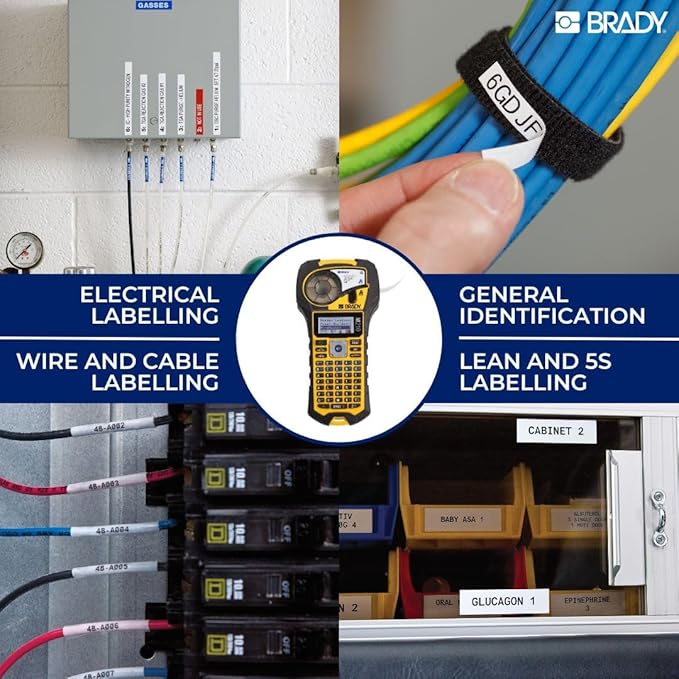 Brady M210 Portable Label Printer with Rubber Bumpers, Multi-Line Print, 6 to 40 Point Font (Replaces BMP21-PLUS Printer), Yellow/Black, 9.5 in H x 4.5 in W x 2.5 in D