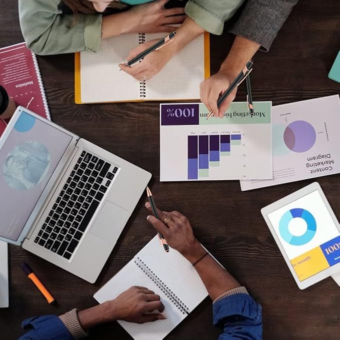 12 PCS 2 in 1 Stylus Ballpoint Pen with Stylus Tip, 1.0 mm Black Ink Metal Pen Stylus Pen for Touch Screens (Rose Gold & Green)