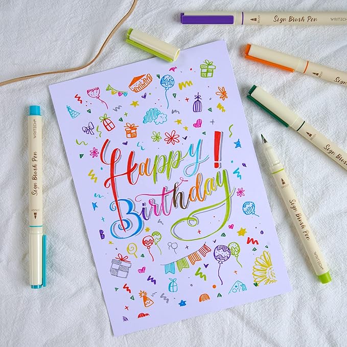 WRITECH Brush Tip Marker Pens: Artist Markers Flexible Tip Water Based 12ct Assorted Colors for Journaling Adult Coloring Hand Lettering Calligraphy Drawing Vibrant Colored