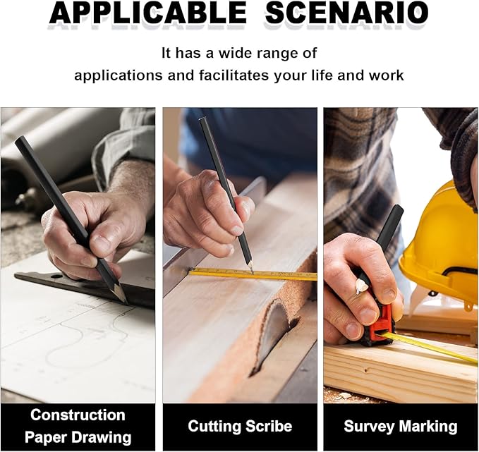 - Multipurpose: wood carpenters pencil can withstand the pressure of marking on hard, rough, and uneven surface materials, such as wood, plywood, cardboard, unprocessed wood, wood, paper, concrete, bricks, and so on