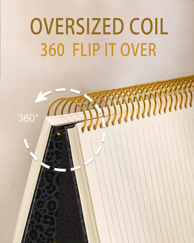 iampanda Spiral Journal Notebook,Strong Twin-Wire Binding with Premium Paper for Girl Women,Cool Cheetah 60 Sheets A5 College Ruled Notebook/Journal,Perfect for School Office Home Gifts,Black Leopard