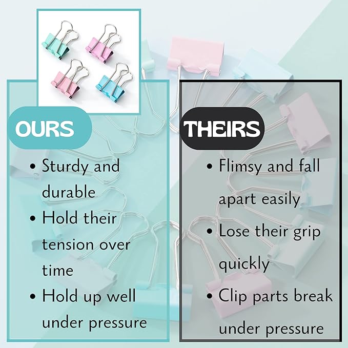 - These binder clips are made of tempered steel for extra strength and durability. The rust-resistant coating keeps them looking new, even after long-term use.