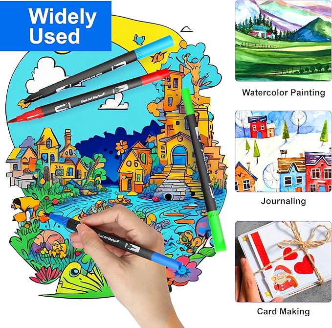 - π¨Dual Brush Marker Pens: The coloring markers have a dual tip design with a 1-2mm brush tip and a 0.4mm fine tip, allowing you to create medium or bold strokes by varying the pressure of the brush, while experiencing fine strokes with the fine tip.The 0.4mm fine tip markers are great for sketching, tracing, and detailing, while the 1-2mm brush tip markers are great for giving large areas of color. The dual-head design fully meets your needs in different situations.