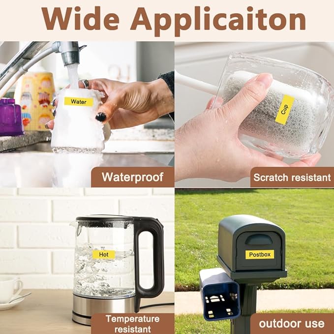 - Wide application: Compatible for Brother P-touch TZe 621 label tape is ideal to print clear, good-looking and durable labels. These labels are great for shelving, kitchen use, cabinets, file folders, USB sticks, food containers, storage boxes, personal possessions, children's school equipment with it's superior adhesive