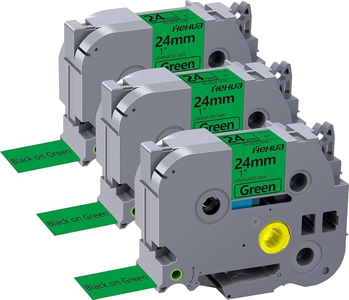 Hehua 24mm 1 inch Laminated Green Tape Compatible for Brother P-Touch TZe-751 TZe751 TZ-751 TZ751 TZe TZ Label Tape for Ptouch PT D600 D610 P710bt, 1'' x 26.2ft Black on Green, 3 Pack