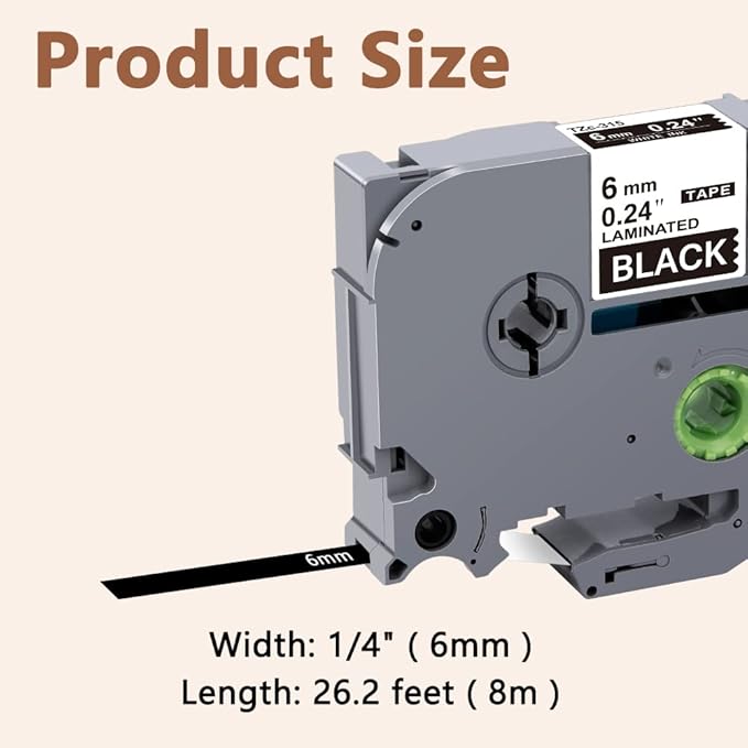 - Size - 1/4" ( 6mm ) x 26.2' ( 8m ) each 6mm label tape. Color - White ink on black tape