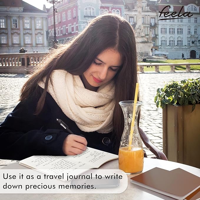 - Feela 8 Pack Soft Cover Journals include 8 brown A5 college ruled soft cover travel journals. 250 GSM colored paper cover outside and 80 GSM smooth writing lined pages inside.