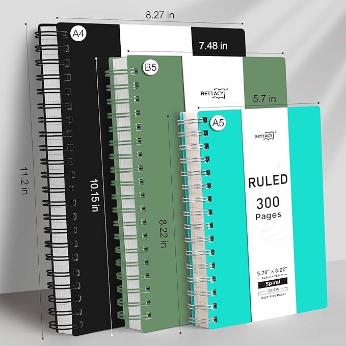 - TWIN-WIRE SPIRAL BOUND: RETTACY College Ruled Notebook features a sturdy twin-wire spiral bound, easy page turning as well as the ability to lay flat at 180Β°. The cover is made of PVC plastic which is waterproof and provides protection for your valuable notes