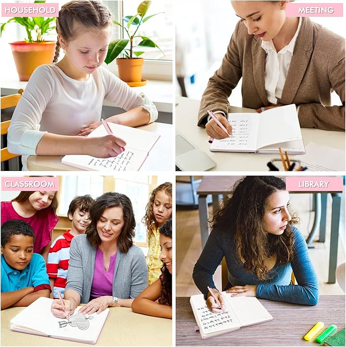 - Feela 3 Pack Classic Ruled Notebooks contains 3 rose pink ruled sturdy cover notebooks and 3 Black Retractable Pens. Each of the notebooks measures 8.3” x 5.1”, which is perfect to carry and easily held by young girls and boys. These black cute pens are customized to be placed in the pen holder, which is pretty convenient.