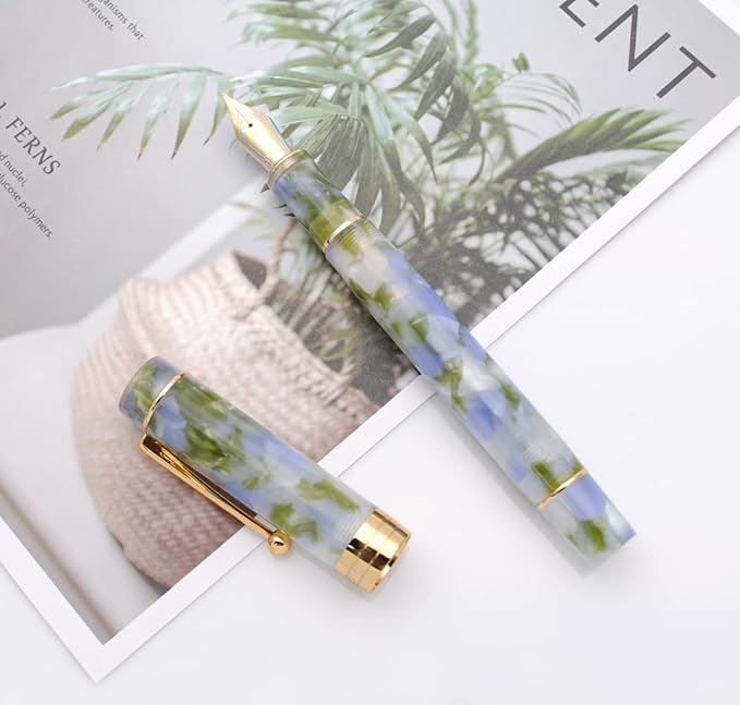 • The high-quality acrylic resin pen body, soft touch as warm as jade, with golden metal trim, make the pen looks more high-end