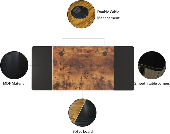 - Sleek design: Functional and modern, the deskβs sleek and contemporary design is a suitable addition for any living space. The particle top is splice board.