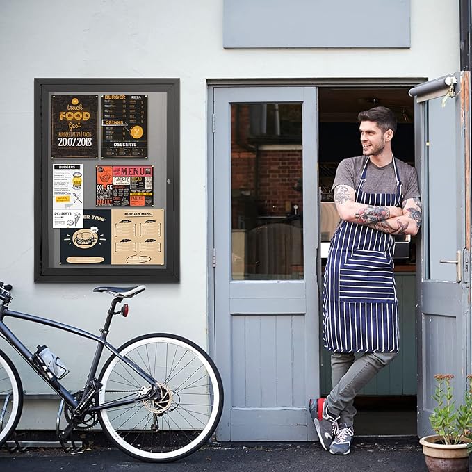 - HIGH-QUALITY MATERIAL:It is made of grey felt pin board, waterproof aluminum construction, shatter-resistant acrylic door and aluminium-plastic panel
