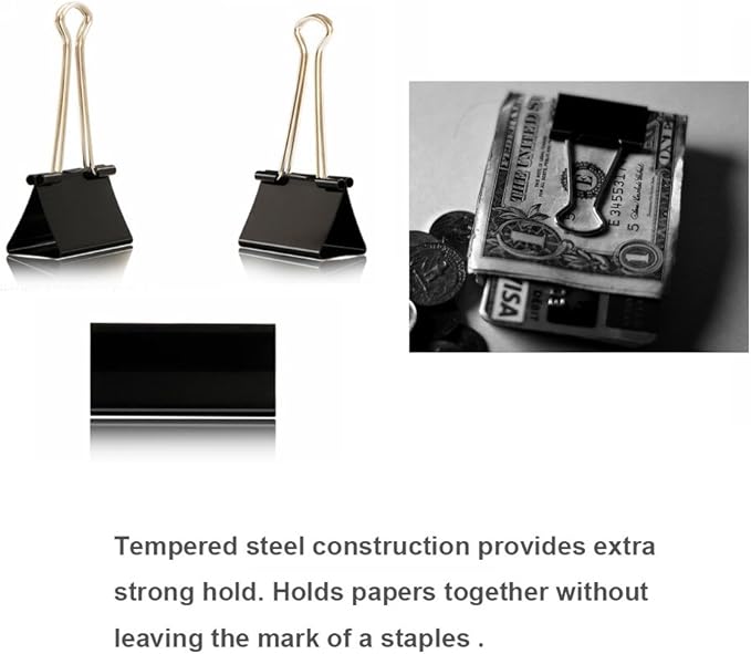 • ADVANTAGE - Spring-tight binder clip keeps files bound together preventing papers from slipping or pulling out, tempered steel construction provides extra strong hold. Holds papers together without leaving the mark of a staple.
