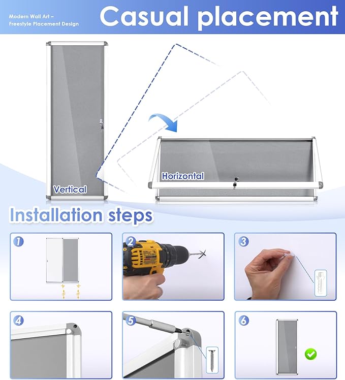 - Versatile Use —Can be used for a variety of purposes, including posting announcements, displaying artwork or photos, and presenting information for public viewing.With a simple and intuitive design ,it's convenient to post and update.