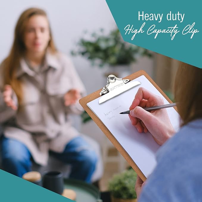 • Strong high capacity metal clip securely holds up to 100 sheets of paper. 6” rust resistant clipboard clips. Clip boards 8.5x11 with pen holder.