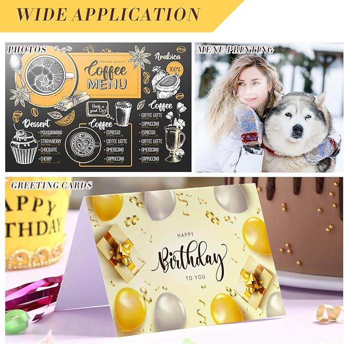 - Proper Size: each glossy photo paper measures approximately 8.5 x 11 inches/ 21.6 x 27.9 cm, so it is appropriate for printing photo, greeting card, calendar, art, restaurant menu, learning files and so on