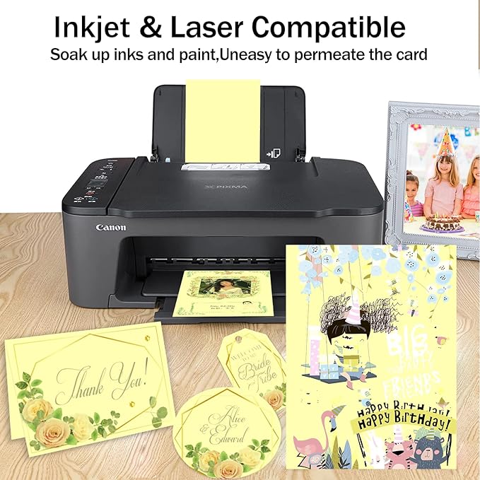- Printer Friendly: Sturdy and versatile, our yellow card stock paper is compatible with most types of inkjet, laser printers and photocopy machines; Please check the maximum thickness specification of your printer before printing