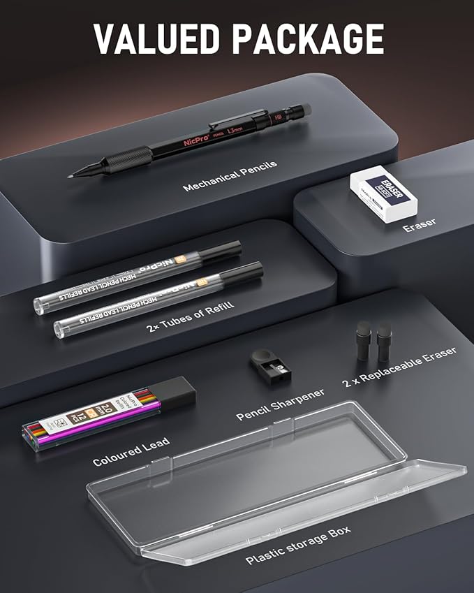 - 5.100% RISK FREE PURCHASE: If you are not satisfied with Nicpro mechanical pencil set , weβre very happy to either provide a no-questions-asked Refund or Replacement. Order today risk free!