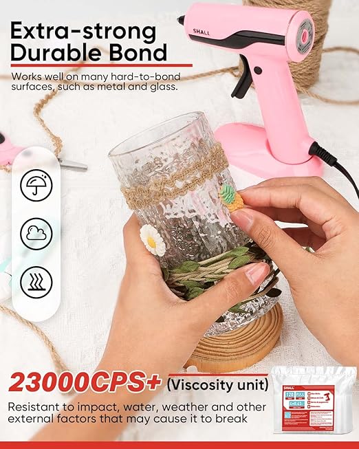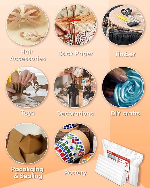 - Strong Bond & Excellent Flexibility : It’s constructed using a flexible EVA hot melt glue that creates a strong bond (2300 CPS+), fast curing speed and toughness; Works well on many hard-to-bond surface from metal to plastic to paper; Better performance in resisting impact, water, weather and other external factors that may cause it to break