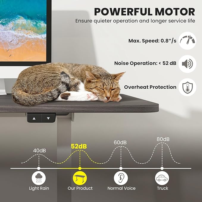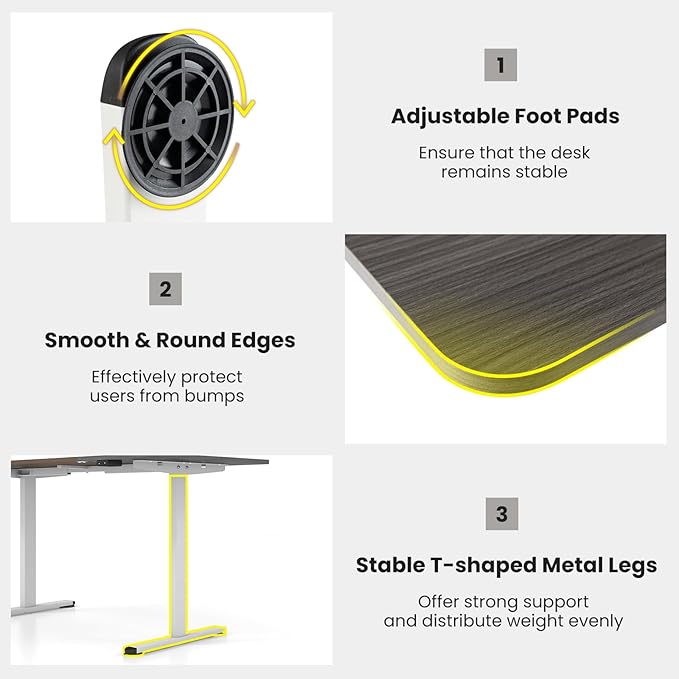 - High Quality Mechanics: This electric adjustable standing desk features an advanced motor that ensures a longer service life. The strong double beams give this liftable desk a more stable structure. In addition, this high-quality mechanical structure can withstand up to 200 pounds even during lifting.