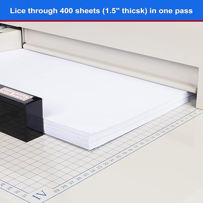 - ★【Wide Application】Paper cutter heavy duty with a maximum cutting length of 12” allows to cut up to 400 sheets of paper (for 80g A4 Paper) once; Besides common paper, our heavy duty paper cutter can also cut something like soft PVC, leather, non-woven fabric, bubble film, fabric pearl cotton and etc, meeting your different cutting needs to the greatest extent& suitable for homes, classroom, offices, companies, printing factories, copy shop, etc..