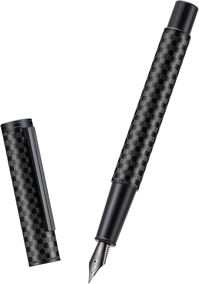 - Unique midnight black design with carbon fiber adds a touch of technology sense to your daily routine. The pen has a really nice carbon fiber weave texture on the surface, and it looks fantastic under the light with angles.