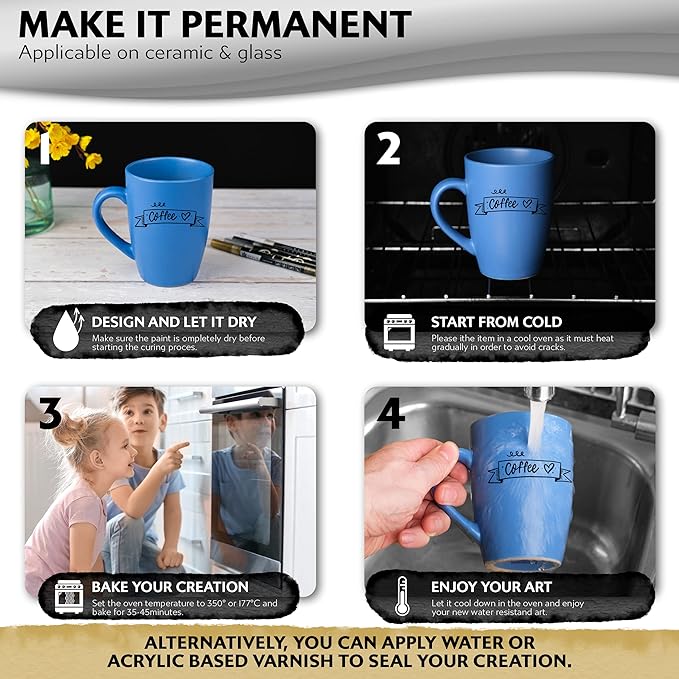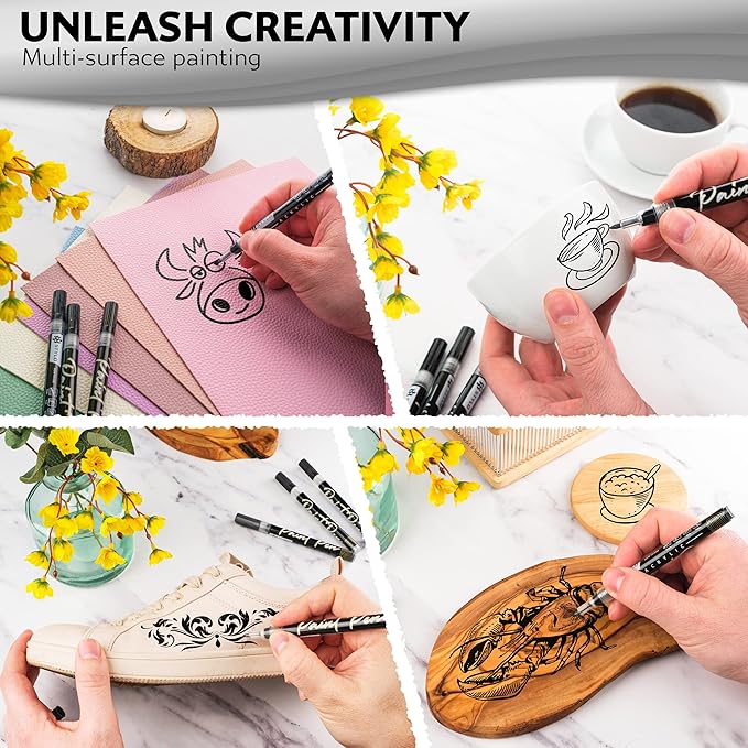 - VERSATILITY – 4 x Black marker mettalic pen suitable to work on wood, fabric, glass, ceramic, stones and other surfaces