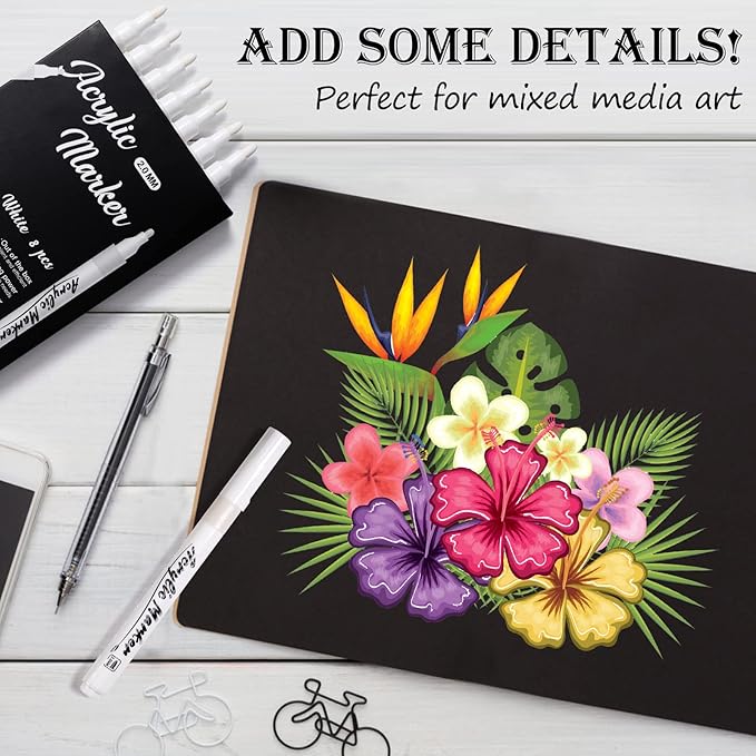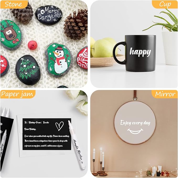 - 【PERFECT GIFT】 Create stunning customs with white acrylic paint pens and other personalised gifts for your loved ones. White pens for art are an ideal gift for crafters and artists.