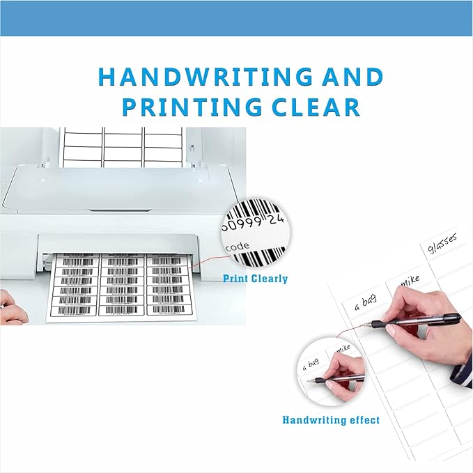 - 【PREMIUM MATERIAL】-- The address label sticker paper texture is a bit thicker than regular paper, ensure easier to writing and easier to peel from backing; Meanwhile mailing labels that have great adhesion and stay where they are put, without curling up and popping off. Address labels in addition to their sticking capabilities, they need to produce bright, clear, clean text and images, easy to work with