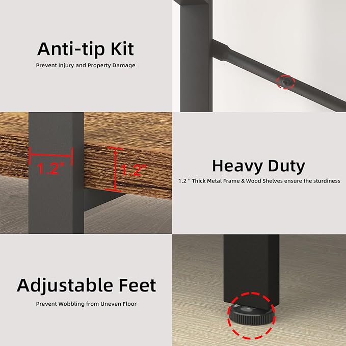 - 【Anti-tip Kits & Easy Assembly 】:Please remember to install the anti-tip kits on the wall for better stability and less unexpected injuries. With smart design and all tools included, you never get stuck with the hard assembly jobs for the rustic brown bookcases and book shelves 5 shelf.