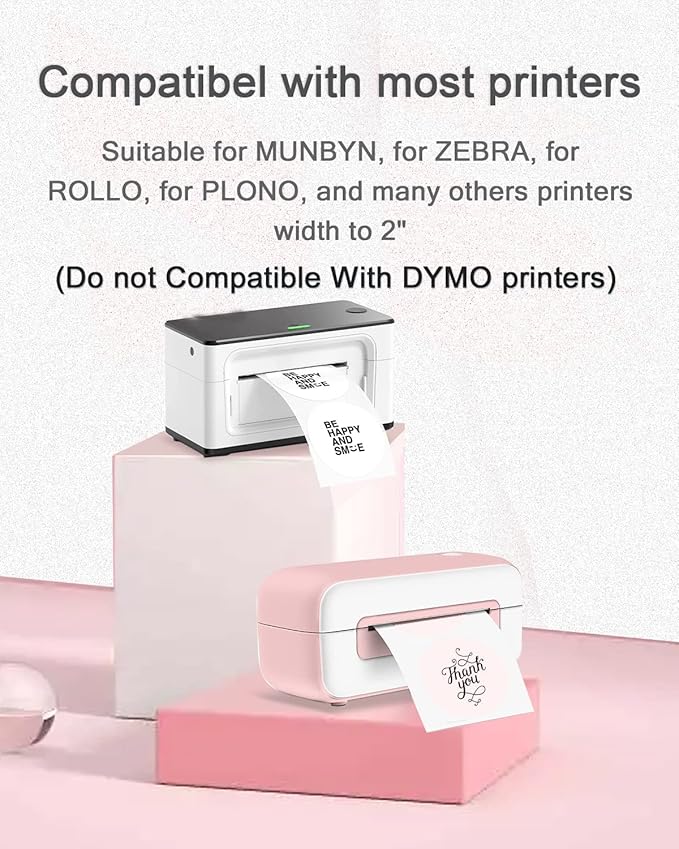 - [Wide Printer Compatibility] :Our thermal labels are compatible with most thermal label printers, Suitable for MUNBYN, for ZEBRA, for ROLLO, for Phomemo, for PLONO, and many others. They are suitable for printers that can adjust their print width to 3". However,do not Compatible With DYMO printers.