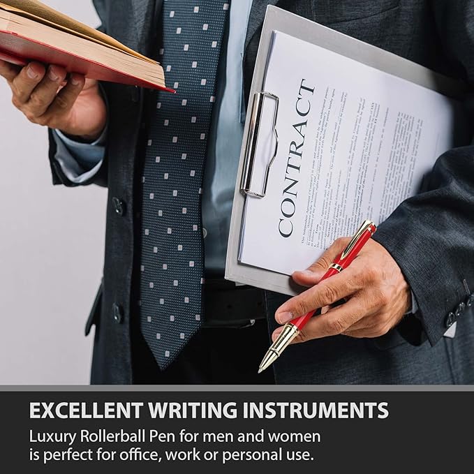 - SILKY SMOOTH WRITING - This luxury Rollerball pen is made of metal, ergonomically designed for a comfortable grip, and its weight is perfect for silky smooth writing that won't tire you out during long writing sessions. The luxury executive pen is sturdy and durable for a long life. Enjoy the feel of luxury ballpoint pens in your hand.
