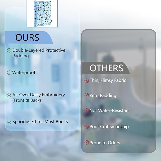LParkin Daisy Flower Embroidery Book Sleeve with Zipper for Readers Protector Cover Gift for Book Lovers, 11x 8.5 Inch Washable Fabric, Daisy Blue
