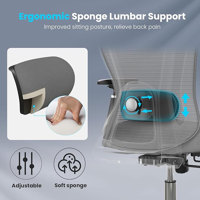 - Ergonomic Design: The ergonomic office chair has an "S" backrest ergonomic design back and adjustable lumbar support to fit the natural curve of the lower back and take the pain of spinal away from your body. The high back of this home office chair can be adjusted up and down by 4".