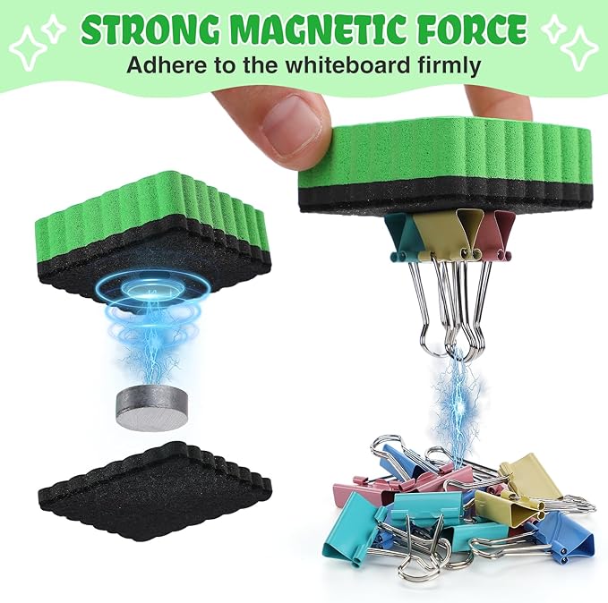 - Strong Magnetic Force: These dry erasers contain strong magnets, which have a strong adsorption force and can always be attached to the whiteboard without falling off, providing more convenience for use in classrooms, offices, conference rooms, and other places.