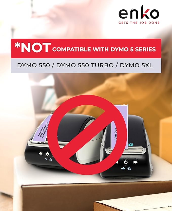 - Printer Compatibility : Rollo Printers - Dymo Printers LabelWriter: 300, 310, 315, 320, 330, 400, 400 Duo, 400 Twin Turbo, 450, 450 Duo, 450 Turbo, 450 Twin Turbo, 4XL, EL40, EL60, SE300, SE450 - CoStar LabelWriters: XL, XL+, BC, BC+, TURBO, SE200, SE250, ACII 200 / ASCII 250 - Seiko Label: ALL - MUNBYN - Phomemo - Jadens - Offnova - iDPRT - NOT COMPATIBLE WITH DYMO 5XL & DYMO 550/TURBO