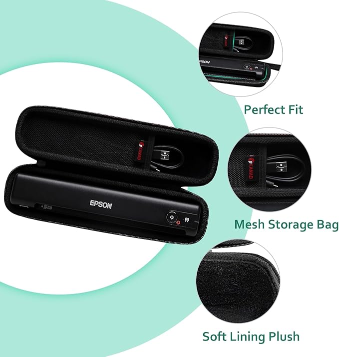 - Greater Capacity : The Hard case can fits your Epson Workforce ES-50 / ES-55R / ES-60W / ES-65WR / DS-30 / DS-70 / DS-80W Document Scanner perfectly and has a storage area for the cables or charging wire