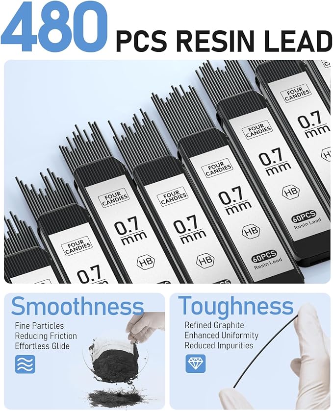 - 480PCS Resin Lead: 8 tubes of 60pcs super capacity leads. A more durable resin lead is not easy to break, provides ultra-smooth writing and clear dark lines.
