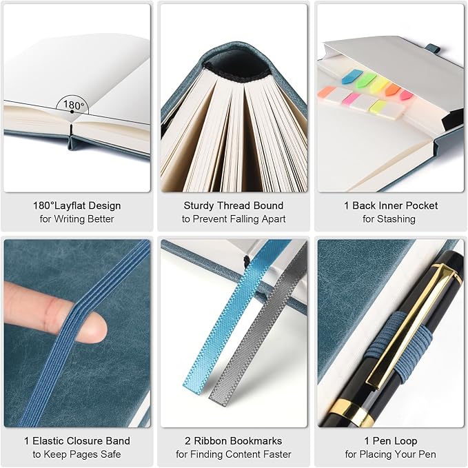 - 【Tough & Stylish Hardcover】Crafted from TOP-NOTCH VEGAN LEATHER with distinctive texture, which is animal-friendly and boasts a luxurious look. DURABLE hard cover provides superior protection to your pages compared to softcover, while offering a stable writing surface. Featuring an innovative thread-bound binding that allows for easy LAY-FLAT use, catering to both right-and left-handed users.