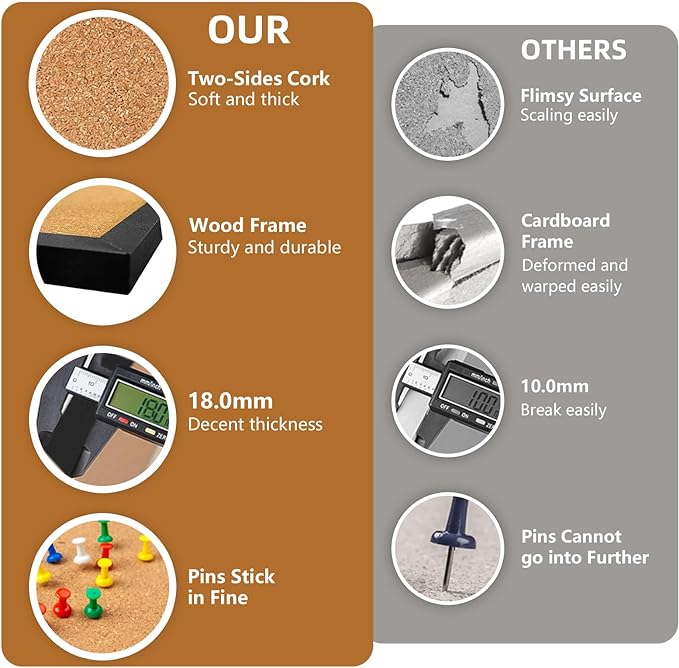 - CORK ON BOTH SIDES - Natural cork surface, odor-free and self-healing. 0.39inch thickened cork make it resistant to piercing.