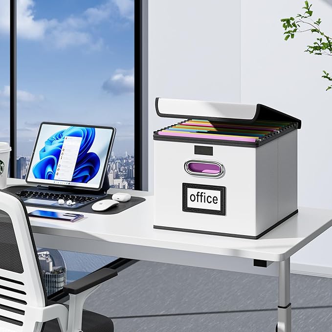 - Unique Functional Design - This file boxes both sides are equipped with practical PVP slide rails, which can not only prevent the two sides of the file storage box from loosening, but also facilitate the sliding of the file folder, which is very suitable for hanging file folders. The metal handles on both sides allow us to easily move the storage box, and the label slot on one side facilitates this classification. Functional features and a beautiful design create the best filing box organizer.