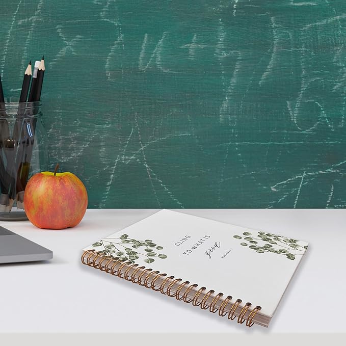 VNWEK Bible Scripture Romans 12:9 Cling to What is Good Motivational Eucalyptus Leaf Spiral Notebook Journal 5.5 x 8.3 inches,Christian Lined Hardcover Spiral Notebook,Christian Gifts