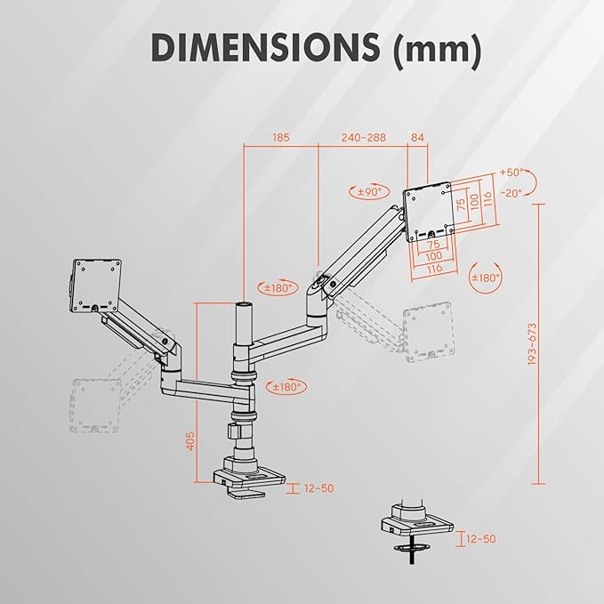 - Robust Desk Dual Monitor Mount –This lightweight yet strong mount offers unparalleled stability and control. Easily attaches to any desk, making it an ideal choice for both home and office environments.