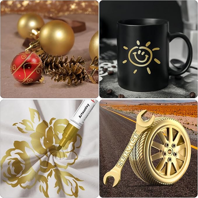 - ✍【2 Pack Gold Color】If you're looking for high-quality paint pens that you can rely on for your projects,Look no further!These permanent paint pens in Gold paint marker are perfect for all your painting needs.These durable and long-lasting pens are ideal for a wide range of surfaces and projects.