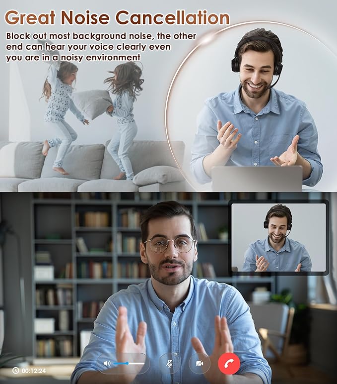 - AI Noise Cancellation & Mute Function: Enjoy great quality calls or meeting with our advanced ENC technology, blocking out most background noise. No more distractions from loud pets or kids. Just hit mute button during calls or meetings for private conversations or to reduce unwanted noise.【NOTE】Mute function exclusively active during calls or meetings