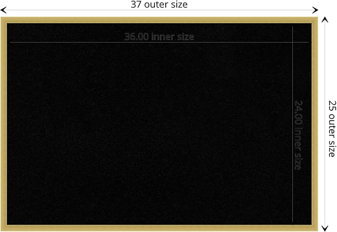 - DIMENSIONS: The overall size of this framed corkboard measures 37 in. x 25 in., including the frame. Its functional cork board area measures 36 in. x 24 in.