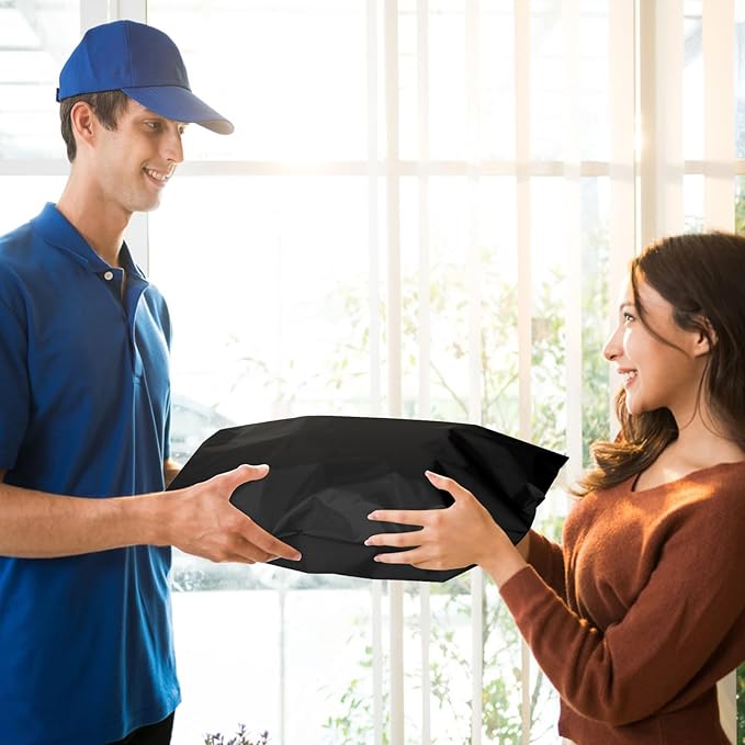 - Eye-Catch Poly Mailers Bags--- Usable size: 24x24 Inch, 50Pack. These large shipping bags have a black outer surface, and gray inner lining, a highly attractive color that makes your products look better. Their smooth texture makes it easy to affix self-adhesive stamps and address labels, helping you customize your brand.