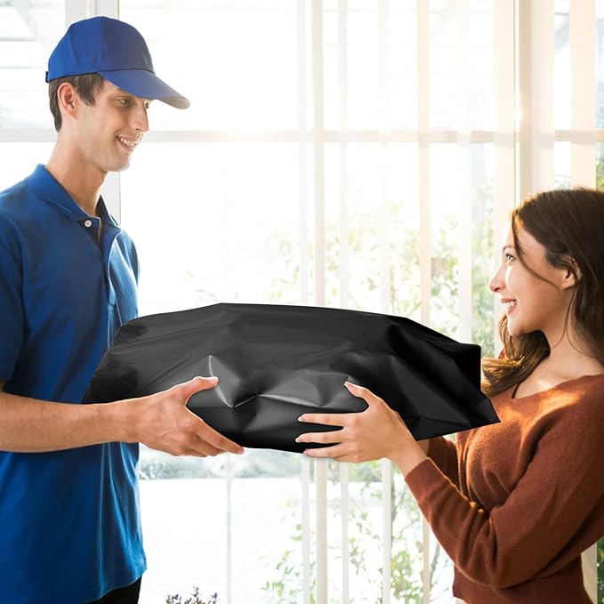 - Eye-Catch Poly Mailers Bags--- Usable size: 19x24 Inch, 100Pack. These shipping bags have a black outer surface, and gray inner lining, a highly attractive color that makes your products look better. Their smooth texture makes it easy to affix self-adhesive stamps and address labels, helping you customize your brand.