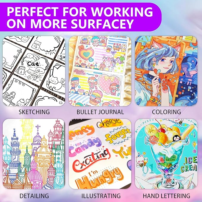 - 【Convenient Fine Tip & Brush Tip 】Oficrafted brush pens for coloring feature a fine tip and a flexible nylon fiber brush tip. You can create ultra-fine lines with the 0.4mm fine tip, and achieve medium or bold strokes by adjusting the pressure with our soft adult coloring markers, which range from 1mm to 4mm. Users can quickly distinguish between the two tips due to the markings on the soft and fine tips of the pen. The dual-tip design enhances the convenience and ease of your drawing process.